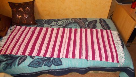 Csaba a harmadik gyermekem. Autista. Hosszas útkeresés után találtunk rá arra a szakmára, amit nagyon szívesen csinál. Nagy élvezettel szö és közben zenét hallgat. Ez a szőnyeg az első próbálkozások egyike.